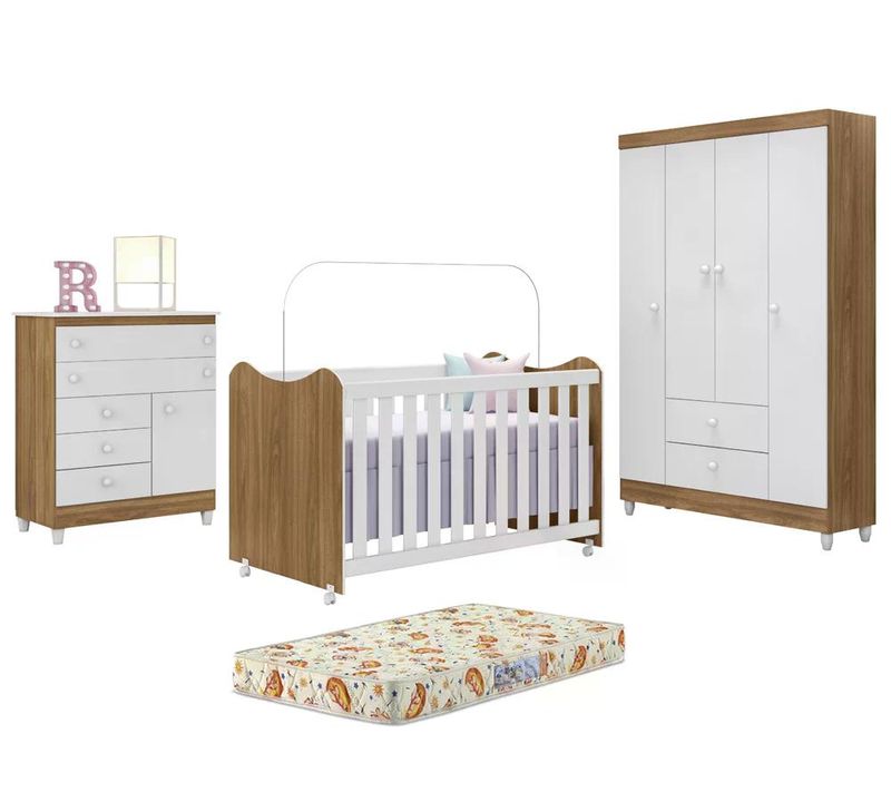 CASAMÓVEIS E ACESSÓRIOSQUARTO COMPLETOQuarto Completo Infantil Com Colchão New Encanto 9700 Nature Branco Peternella
