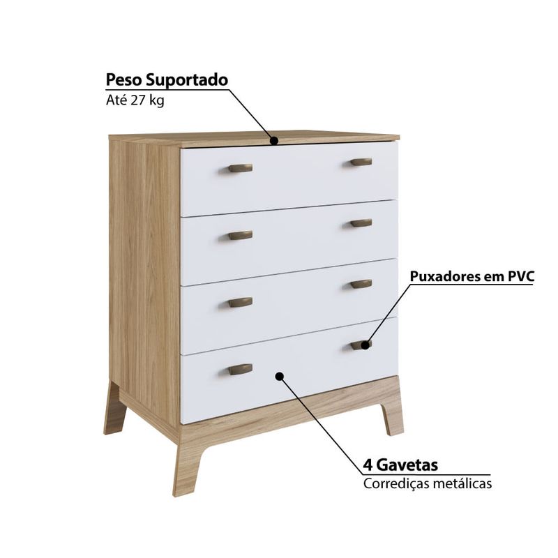 Quarto de Bebê Favo de Mel Americano Completo I - Natural/Branco