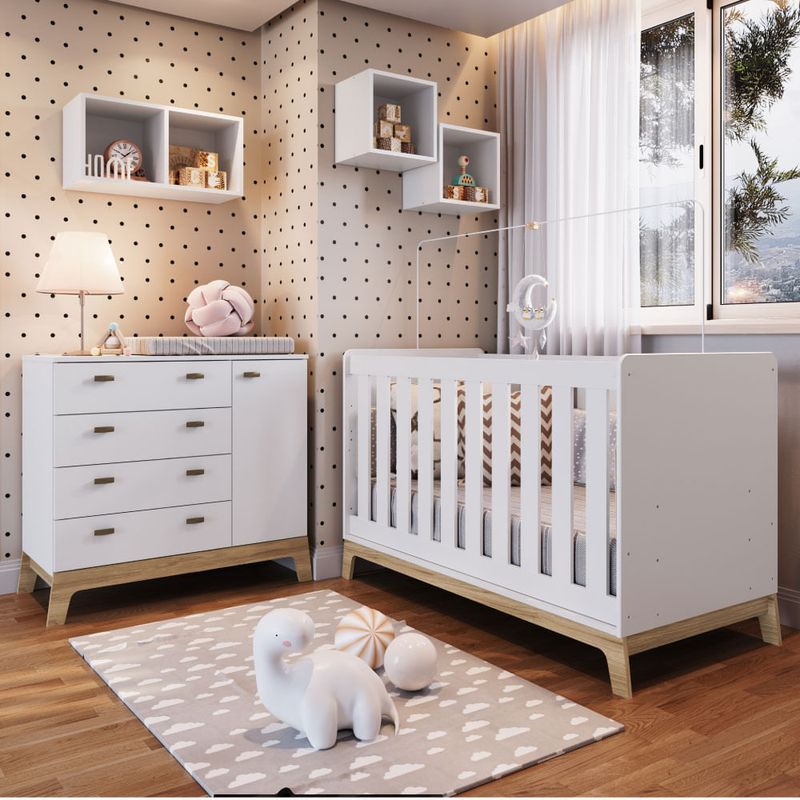 Quarto de Bebê Favo de Mel Berço, Cômoda e Nichos - Branco