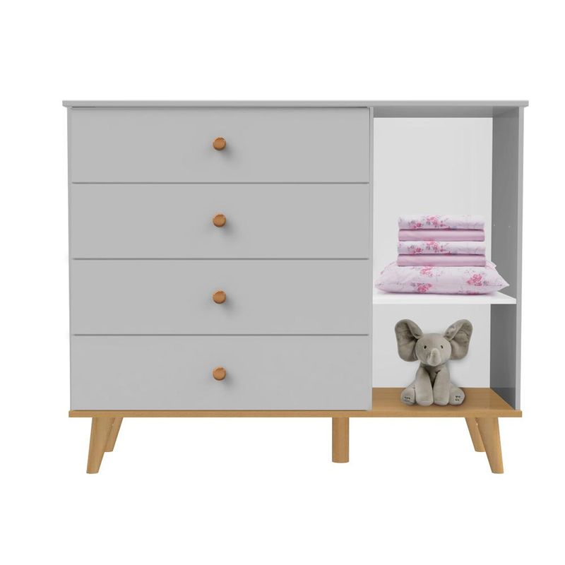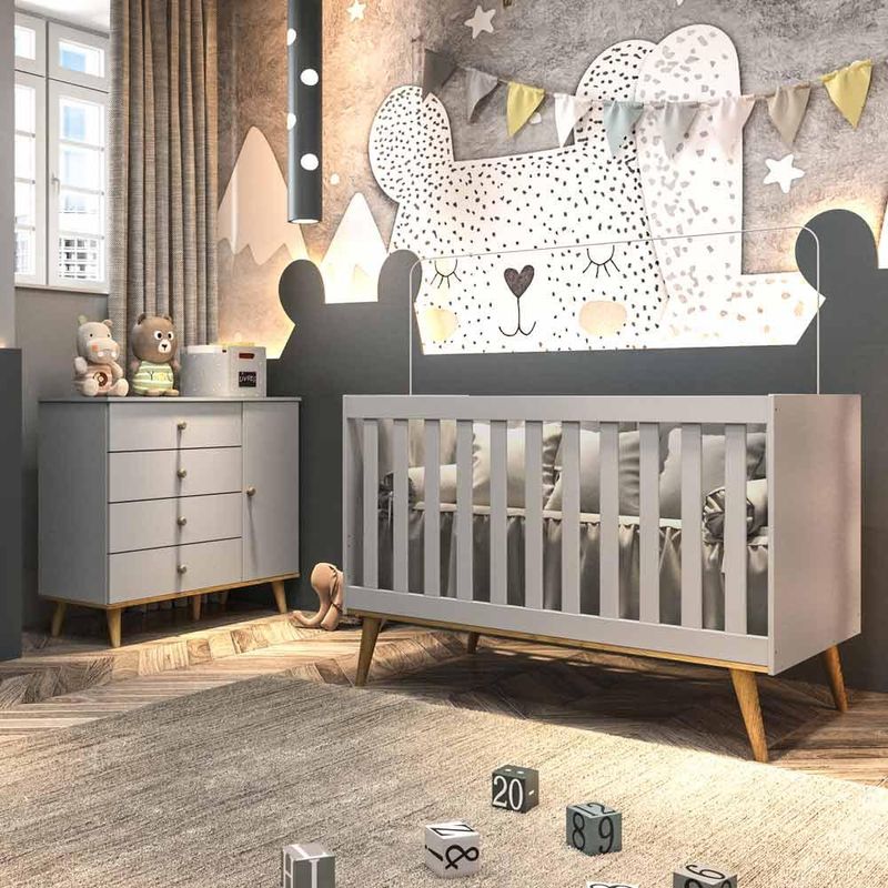 Móveis que trazem mais harmonia para o dormitório do seu bebê. No estilo retrô, a cômoda e o berço 3 em 1 têm os pés palitos de madeira maciça, testados em laboratório para garantir total segurança e resistência às peças. Estes produtos se encontram disponíveis nas cores Cinza Fosco com Bétula, Branco Fosco com Bétula e Rosa Fosco com Bétula.