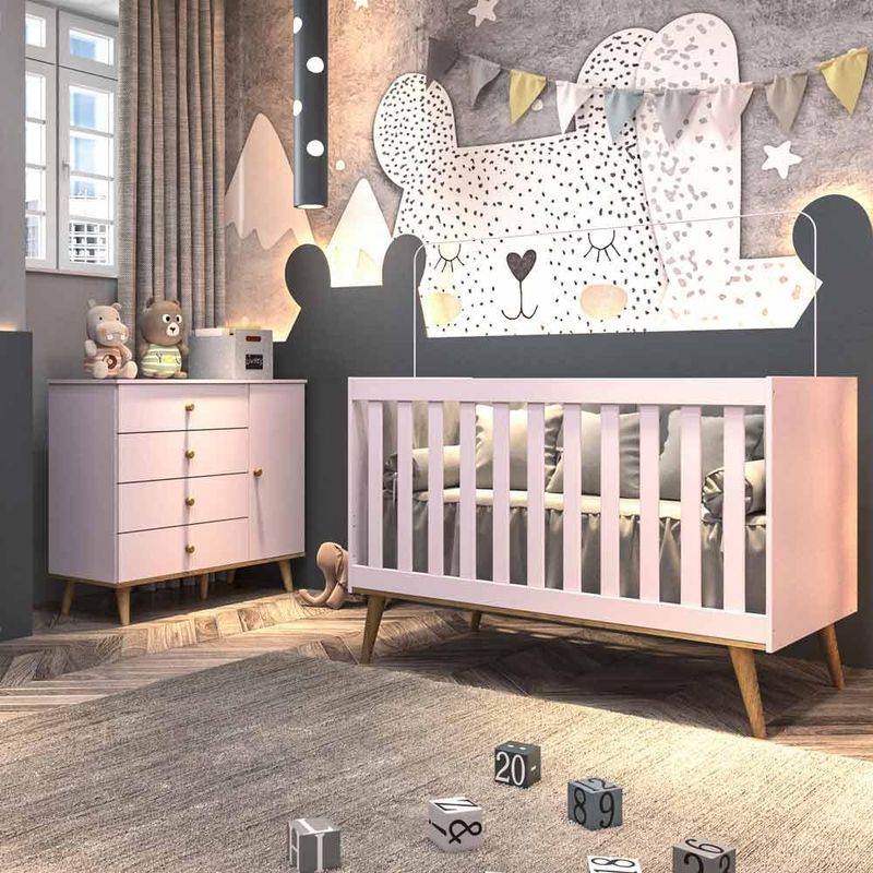 Móveis que trazem mais harmonia para o dormitório do seu bebê. No estilo retrô, a cômoda e o berço 3 em 1 têm os pés palitos de madeira maciça, testados em laboratório para garantir total segurança e resistência às peças. Estes produtos se encontram disponíveis nas cores Branco Fosco com Bétula, Cinza Fosco com Bétula e Rosa Fosco com Bétula.