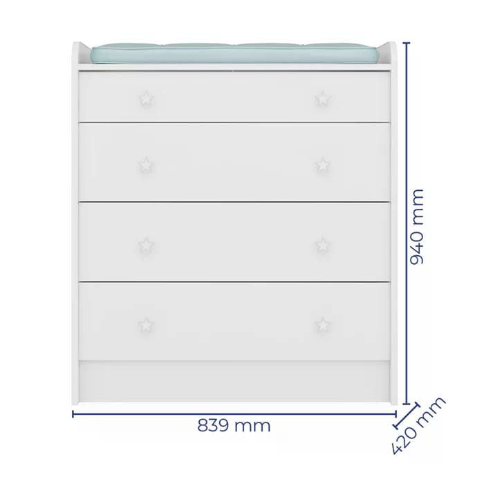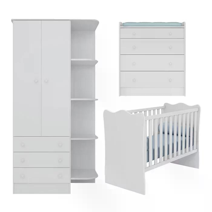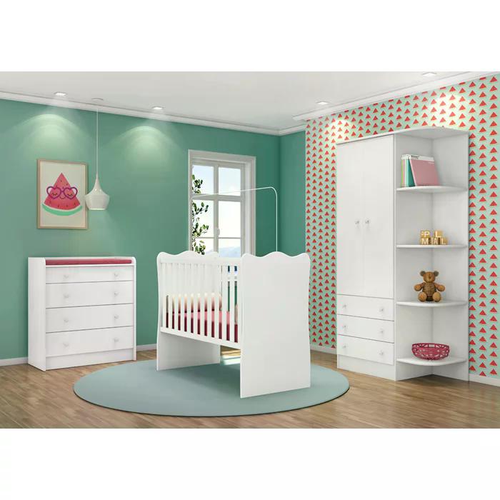 Jogo de quarto infantil, com um design lindo e sofisticado, deixando o ambiente ainda mais moderno e aconchegante. Estrutura em MDP de 15mm e 12mm, feito com material ecológicamente correto, para melhor durabilidade e resistência às peças, pintura atóxica livre de materiais pesados, e excelente acabamento UV (Brilho). Composto por portas de bater com dobradiças metálicas, cabideiro oblongo metálico, ótima divisão interna para roupas, gavetas externas com corrediças metálicas, puxadores em plástico com formato de estrela, bordas arredondadas em perfil PVC, cantoneira, prateleiras para melhor organização, trocador embutido que garante mais praticidade no dia-dia, estrado do berço em MDF de 6mm com altura regulável em três opções: 1ª: 35cm 2ª: 48cm e 3ª: 61cm, travessas em MDF de 25mm, suporte para mosquiteiro, e sistema anti-tombamento para evitar riscos de acidentes. O berço é certificado pelo InMetro, e o colchão indicado é de 130x60. Mais produtos da linha infantil Doce Sonho, você encontra em nosso site, podendo fazer a composição completa para o quarto do seu (sua) filho (a). Estes móveis chegarão em sua casa separados em 05 volumes.