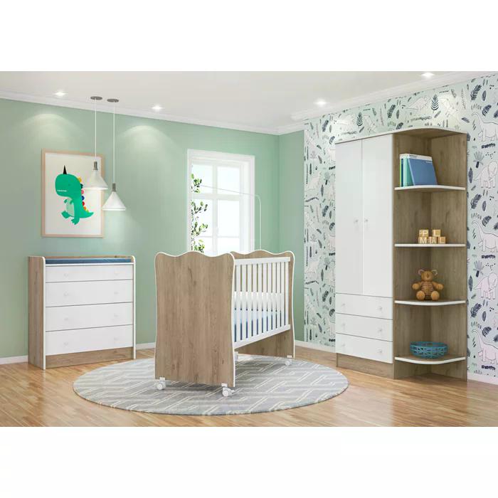 Jogo de quarto infantil, com um design lindo e sofisticado, deixando o ambiente ainda mais moderno e aconchegante. Estrutura em MDP de 15mm e 12mm, feito com material ecológicamente correto, para melhor durabilidade e resistência às peças, pintura atóxica livre de materiais pesados, e excelente acabamento UV (Brilho). Composto por portas de bater com dobradiças metálicas, cabideiro oblongo metálico, ótima divisão interna para roupas, gavetas externas com corrediças metálicas, puxadores em plástico com formato de estrela, bordas arredondadas em perfil PVC, cantoneira, prateleiras para melhor organização, trocador embutido que garante mais praticidade no dia-dia, estrado do berço em MDF de 6mm com altura regulável em três opções: 1ª: 35cm 2ª: 48cm e 3ª: 61cm, travessas em MDF de 25mm, suporte para mosquiteiro, sistema anti-tombamento para evitar riscos de acidentes, 04 rodízios de plástico, sendo 02 com trava de segurança e 02 sem trava de segurança. O berço é certificado pelo InMetro, e o colchão indicado é de 130x60. Mais produtos da linha infantil Doce Sonho, você encontra em nosso site, podendo fazer a composição completa para o quarto do seu (sua) filho (a). Estes móveis chegarão em sua casa separados em 06 volumes.