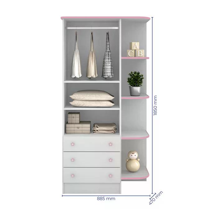 CASAMÓVEIS E ACESSÓRIOSQUARTO COMPLETOQuarto Infantil 03 Peças Doce Sonho 1X777X825 Branco Rosa Com Rodizios Qmovi