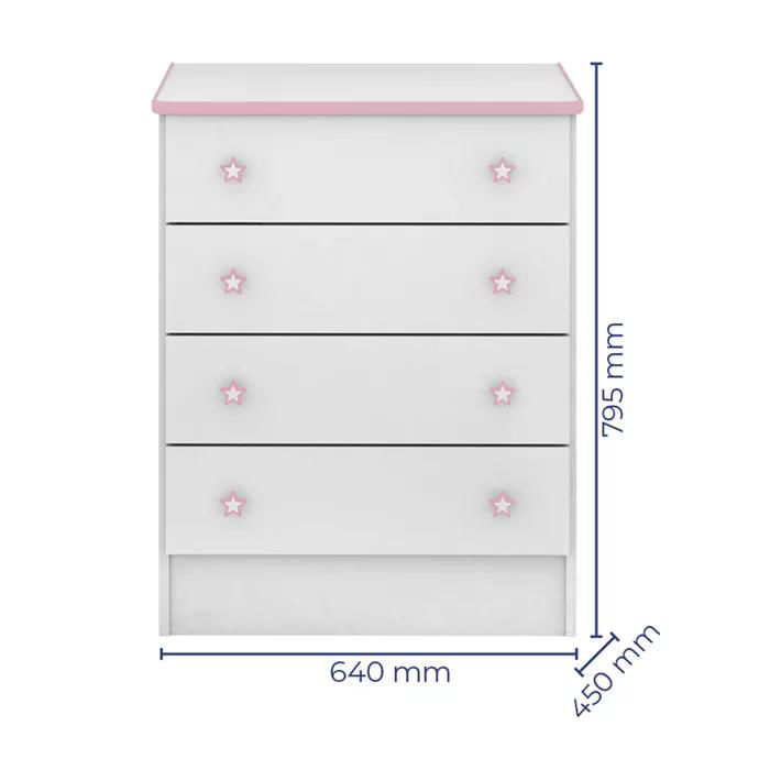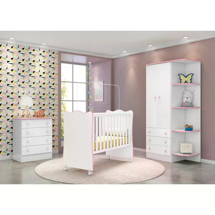 Quarto Infantil 03 Peças Doce Sonho 1X777X825 Branco Rosa Com Rodizios Qmovi