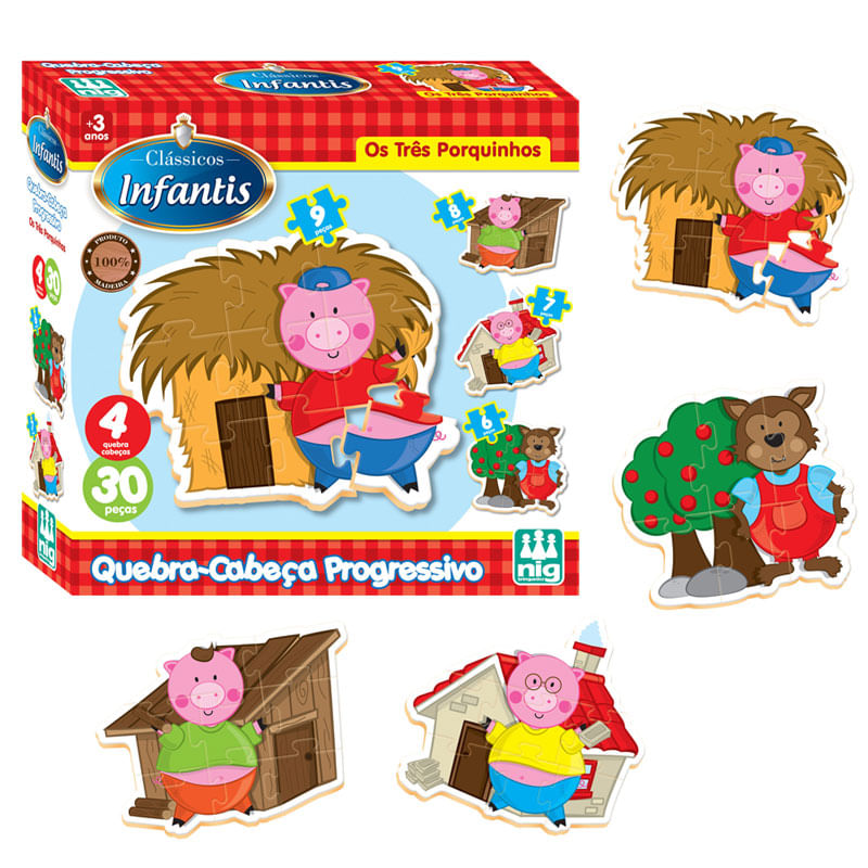 Quebra-Cabeça - Progressivo - Os Três Porquinhos - Madeira - 30 peças - Nig