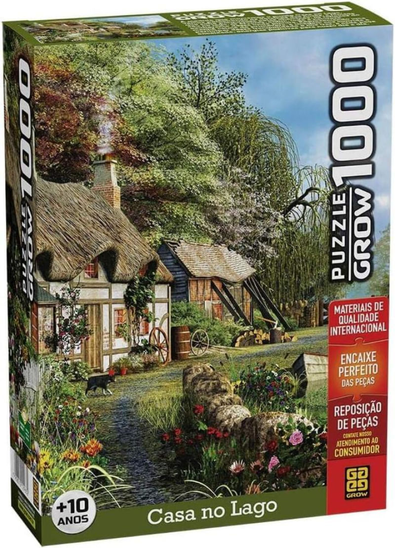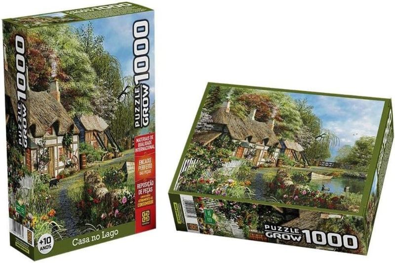 AVISO: IMAGENS MERAMENTE ILUSTRATIVAS!! Montar Quebra-Cabeças é mais do que separar peças e tentar encaixá-las, formando imagens. É um desafio estimulante e prazeroso. Um passatempo lúdico que sociabiliza e une pessoas em torno de lindas imagens que fazem sonhar. Agora com essa linda Casa no Lago que montada forma uma incrível paisagem. Idade: A partir de 10 anos Número de peças: 1008 peças Tamanho da Imagem depois de Montado: 69 x 49 cm Marca: Grow
