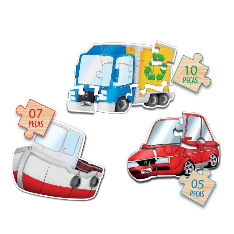 Conteúdo da Embalagem: Três Quebra-Cabeças com 5, 7 e 10 peças