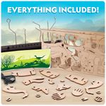 Conteúdo do kit: Peças de madeira pré-cortadas, base motorizada iluminada, cabo USB, decalques e guia educativo
