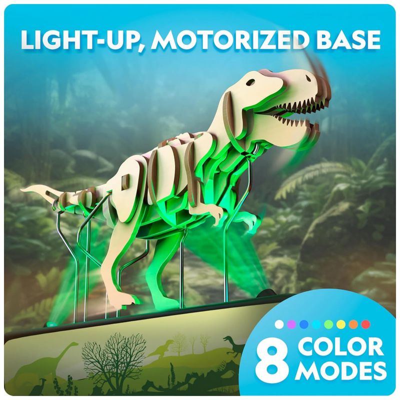 Transforme a construção de modelos em uma experiência pré-histórica com o Quebra-Cabeça 3D Dinossauro T.?Rex Motorizado da National?Geographic. Este brinquedo educativo permite que crianças e adultos montem um dinossauro em madeira de 50 peças, estimulando habilidades manuais, raciocínio lógico e criatividade. A base motorizada movimenta o T.?Rex e ilumina o modelo com 8 modos de luz multicolor — incluindo sete cores sólidas e um modo de ciclo automático — oferecendo uma experiência interativa que também funciona como luminária decorativa.