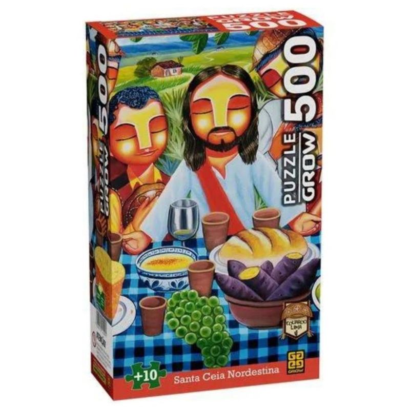 Desfrute de uma experiência cultural e artística com o Quebra-Cabeça Santa Ceia Nordestina da Grow! Este quebra-cabeça de 500 peças traz à vida a icônica Santa Ceia, reinterpretada pelo talentoso artista baiano Eduardo Lima. Com um tamanho aproximado de 49,5 x 36,5 cm, este puzzle é um desafio envolvente, perfeito para maiores de 10 anos. Eduardo Lima, um artista plástico, pintor e escultor autodidata, descobriu sua paixão pela arte aos 8 anos de idade\n\nIdade recomendada:8-13 anos;Composição/Material:Papel;Funciona com pilhas:Não;Brinquedo com luz:Não;Brinquedo com som:Não;Dimensões:26,7x16x7 cm;Peso:0,315 kg;Código de Barras:7908010145991;Garantia do Fornecedor:3 Meses contra defeito de fabricação;