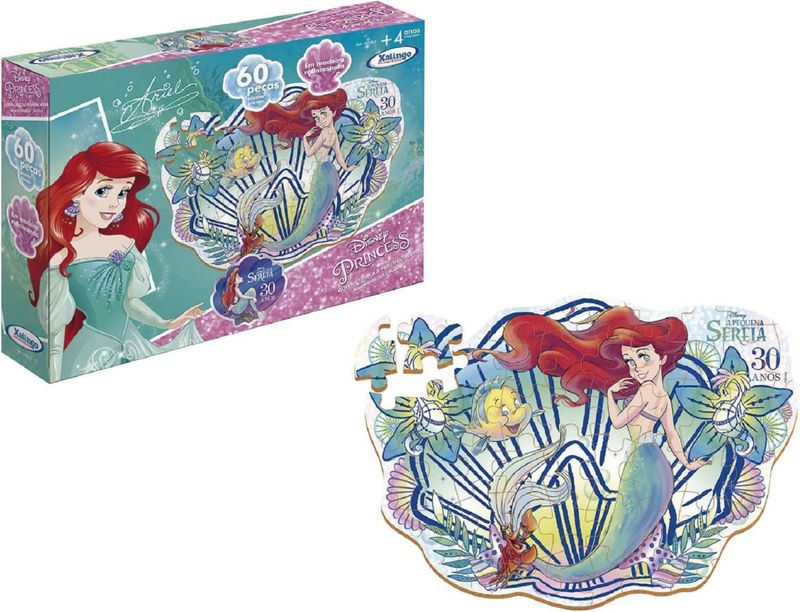 Ele conta com 60 peças que juntas formam uma linda imagem da Ariel. Mais que um passatempo, auxilia no desenvolvimento da coordenação motora, sendo um jogo fundamental na formação educacional e cognitiva dos pequenos.