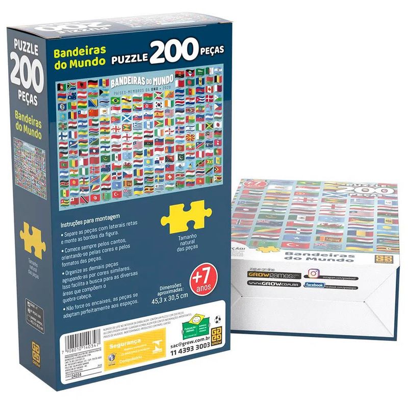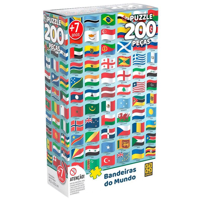 Bandeiras do Mundo é um quebra-cabeça para aprender e se divertir! Possui 200 peças que se encaixam e formam os países membros da ONU - 2020. É um puzzle didático, que além de superdivertido, introduz esse conceito às crianças.