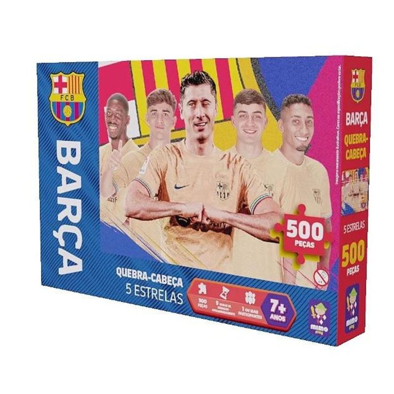 Com esse incrível Quebra Cabeça 500 pçs - 5 estrelas - Barça, a criança agora pode brincar com seus craques preferidos!!