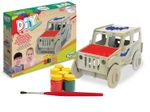 O produto contém 28 peças em madeira reflorestada, 1 pincel e 6 tintas guache sortidas.