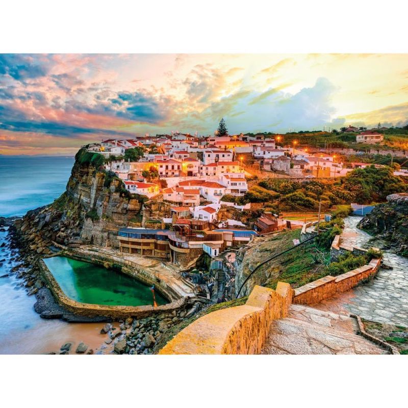 A pouco mais de 40km de Lisboa existe um paraíso chamado Azenhas do Mar. Uma aldeia situada na região de Sintra, com suas encostas à beira do Oceano Atlântico, de muita beleza e originalidade. Nela há uma piscina natural à beira-mar que é a grande atração entre os turistas. Suas casinhas fixadas no penhasco têm um charme único, com azulejos brancos em suas fachadas. A melhor vista que se pode ter de Azenhas do Mar é do topo de um mirante localizado justamente no ponto em que esta linda imagem foi concebida. Uma paisagem portuguesa, com certeza, que surpreende e tira o fôlego de todos nós!