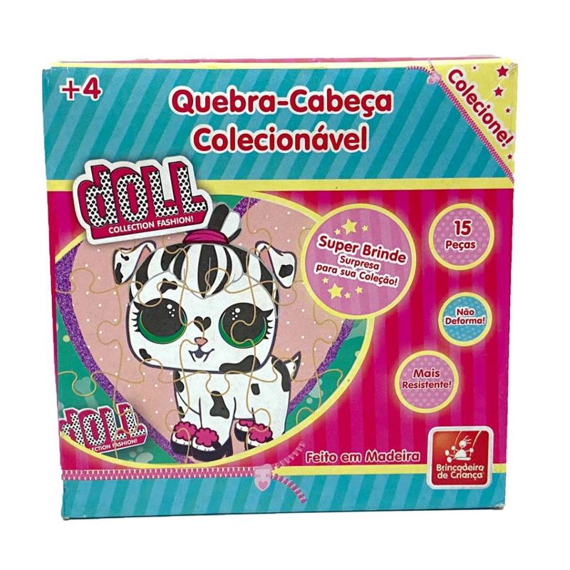 Quebra-cabeça Doll em Madeira Brincadeira de criança, é um jogo feito em madeira super resistente, que não deforma e vem com um super brinde. Com inspiração das bonequinhas famosas que vêm na bolinha, criou-se este brinquedo super divertido.