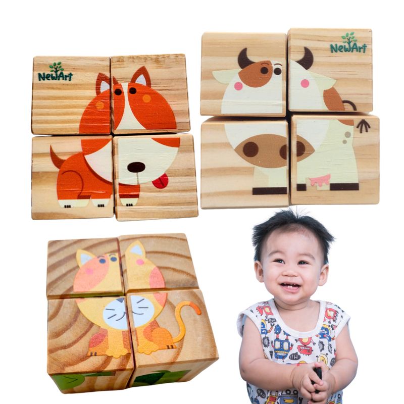 É só ir virando os cubos e procurando as imagens, a criança tenta formar o desenho do animal escolhido.