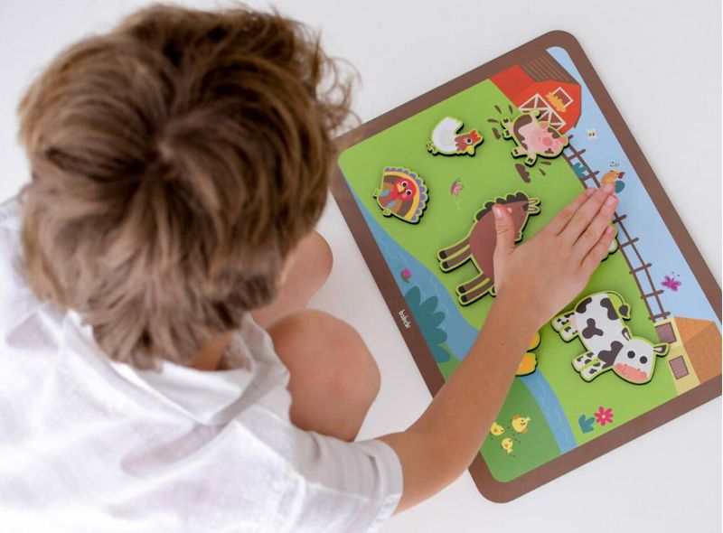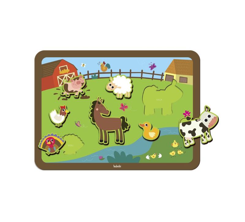 Aviso: Imagens meramente ilustrativas!!! Quebra-cabeça de encaixe Fazendinha O quebra-cabeça de encaixe foi pensado para as mãozinhas pequenas das nossas crianças. As peças são robustas e grandes para facilitar seu manuseio. Enquanto encaixam desenvolvem a motricidade e o pensamento lógico. Com os animais da fazendinha trabalham a imaginação e criatividade de maneira lúdica e divertida. Feito de madeira MDF reflorestada. Contém 7 peças. Indicado para crianças a partir de 18 meses. Recomendamos a interação de um adulto. Colocar na boca pode danificar o produto. Utilizamos materiais seguros, duráveis e ecológicos. Contém: 7 Peças Idade: 18+ Meses Material: Madeira Reflorestada Medida Aproximada da Base: 30cm x 41cm Marca: Babebi Registro Imetro: 009272/2022