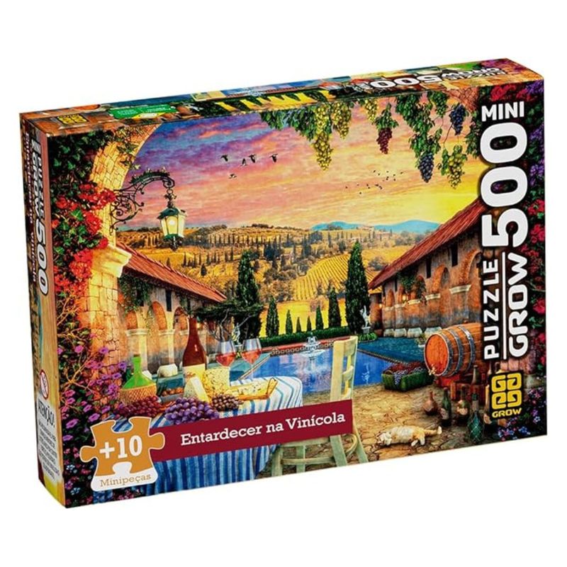 Este quebra-cabeça de 500 peças mini, apresenta uma mesa lindamente posta para dois aos pés dos vinhedos da Toscana.