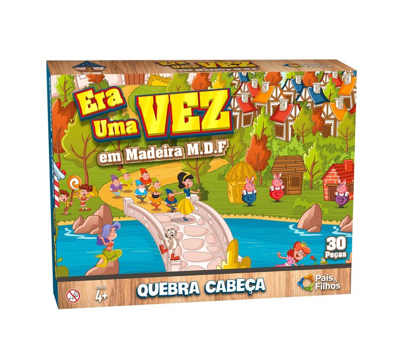 É diversão para quebrar a cabeça com este lindo quebra cabeça com 30 peças em MDF da Pais e Filhos. O desafio é montar a figura formando uma bela imagem que reúne vários contos clássicos.