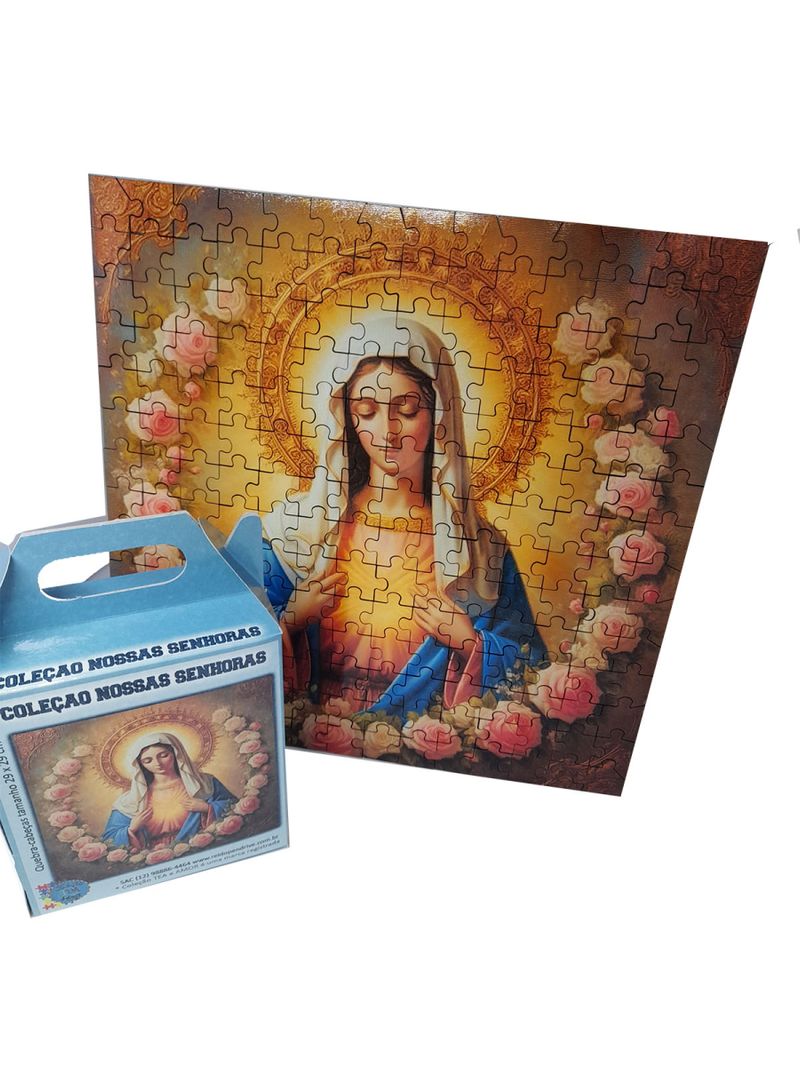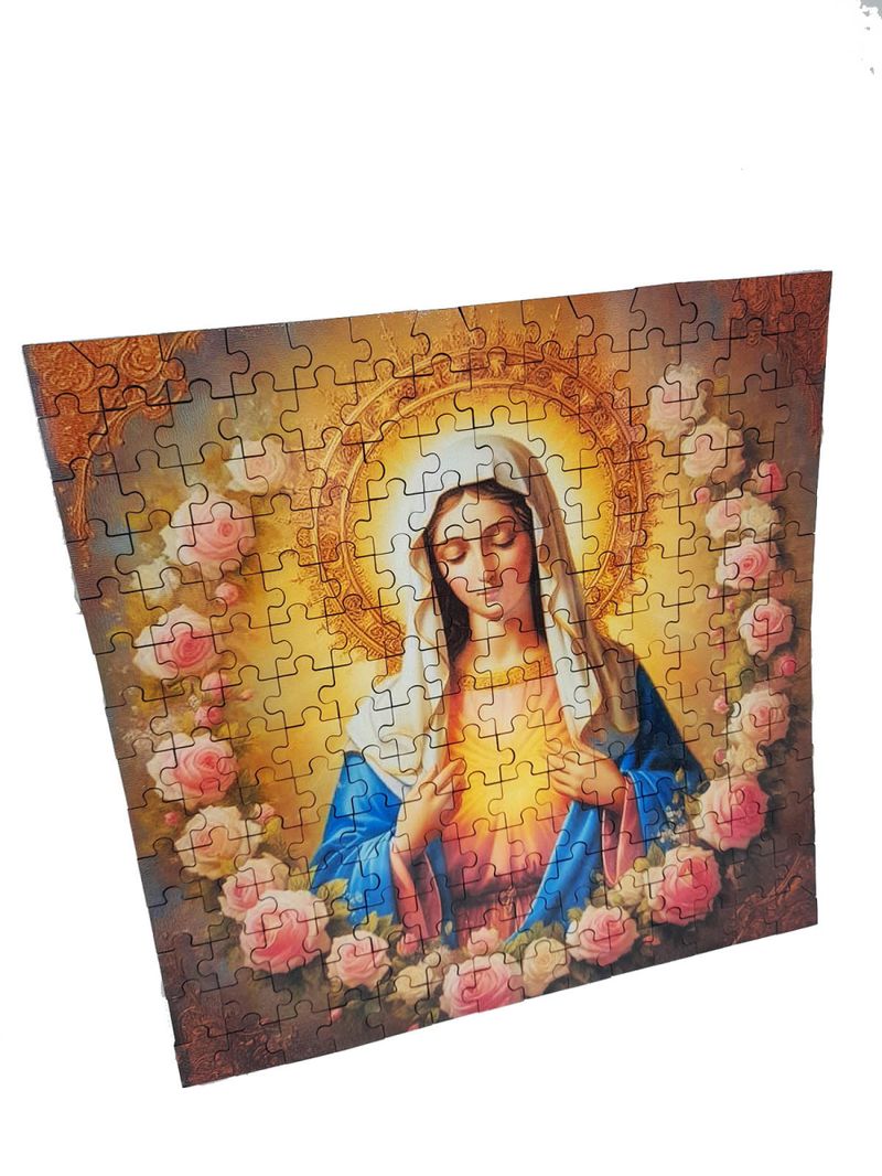 Embarque em uma jornada de fé e desafio mental com nosso magnífico, Quebra-cabeça Nossa Senhora de 196 Peças em MDF. Esta obra de arte em forma de quebra-cabeça apresenta uma imagem serena de Nossa Senhora, cercada por um exuberante jardim de flores, criando uma cena de contemplação e beleza.