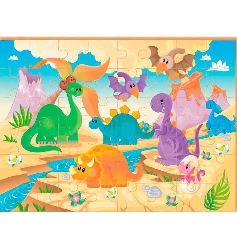Quebra Cabeça Gigante Dinossauros em Madeira 48 Peças