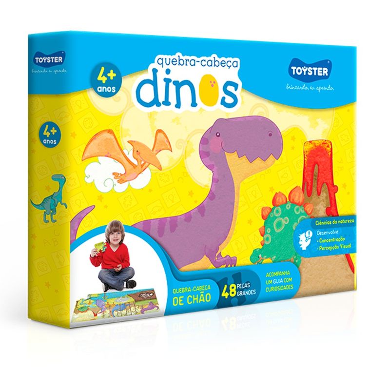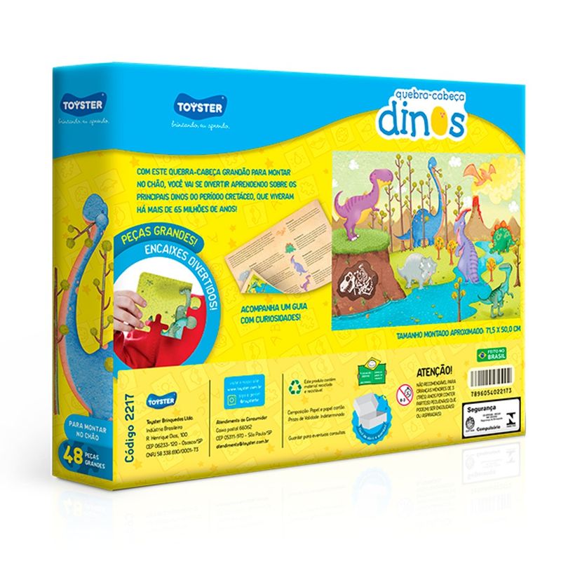 Com esse quebra cabeça grandão para montar no chão, você vai se divertir aprendendo sobre os principais dinos do período cretáceo, que viveram há mais de 65 milhões de anos!
