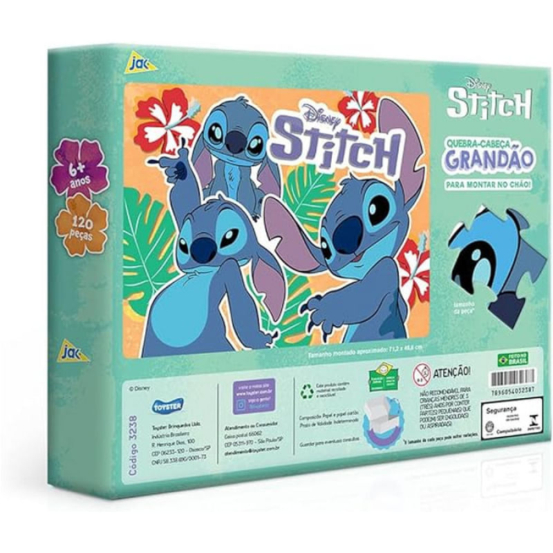 Divertido quebra-cabeça de chão do Stitch com peças grandes que medem 6,0 x 4,8 cm.