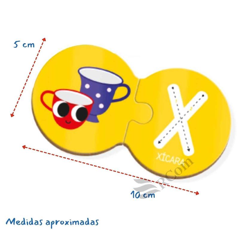 Aprender a escrever ficou mais divertido com esse incrível quebra cabeça. Desenhe letras juntando-as à figura correspondente. São 26 quebra cabeças, mais 07 peças extras para treinar os movimentos brincando com a caneta.