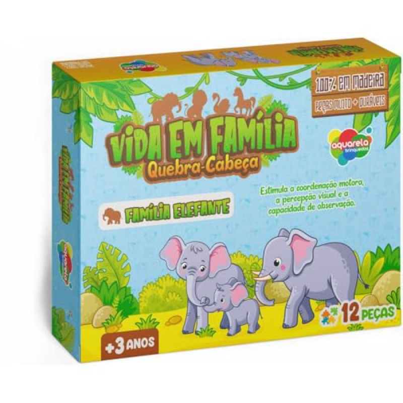 BRINQUEDOSQuebra-Cabeca Madeira Vida Em Familia Elefante 12Pcs