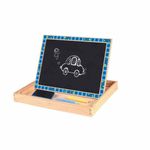 Acompanha 78 peças magnéticas com diferentes formas e cores, gizes coloridos e um mini apagador.
