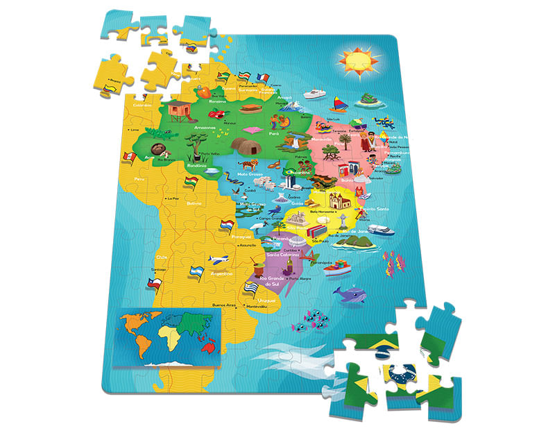 A criança aprende a reconhecer o mapa do Brasil e suas regiões, estados e capitais de uma forma muito divertida.