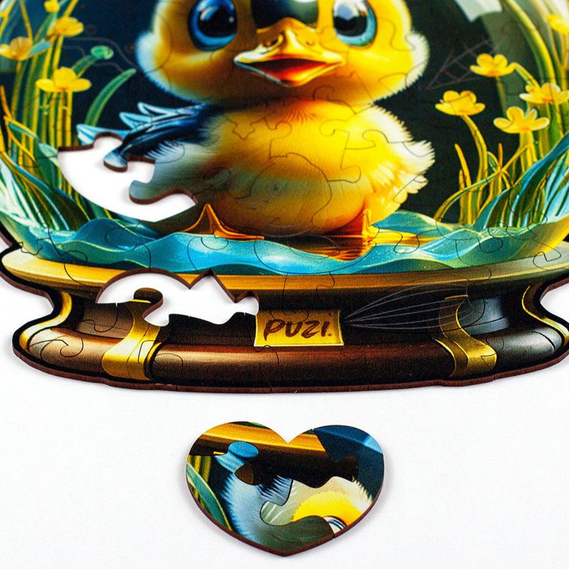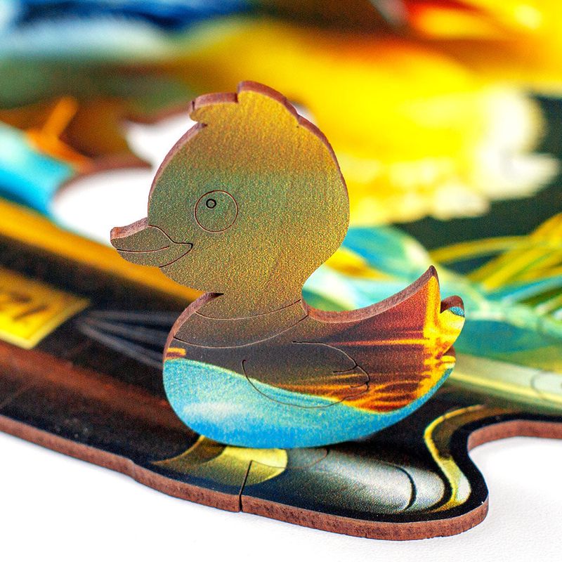 Neste quebra-cabeça, a criança mergulha no universo alegre desse patinho sapeca. Entre as peças temáticas, surgem formas que representam o Caquinho e seu habitat natural, criando uma conexão divertida e envolvente com o personagem.