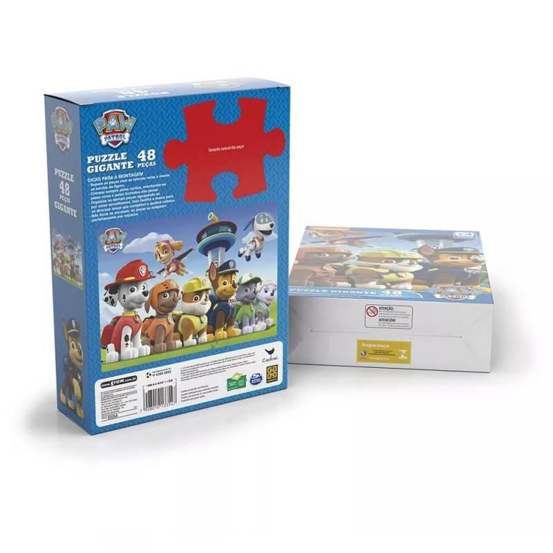 Quebra-Cabeça Patrulha Canina 48 peças - Grow 03354 Patrulha Canina é uma animação infantil criada por Keith Chapman. Uma série de ação e aventura estrelada por seis filhotes heroicos liderados por um menino de 10 anos de idade chamado Ryder. Com uma mistura única de habilidades para resolver problemas. Um incrível quebra-cabeça com os personagens de Patrulha Canina, que traz peças gigantes para você montar e decorar seu quarto! Tamanho da imagem depois de montado: 50 x 70 cm As cores podem variar entre as imagens mostradas acima e o produto. Imagens meramente ilustrativas.