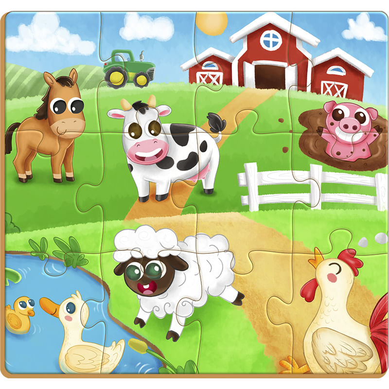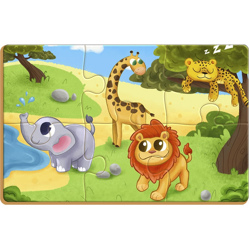 Material didático para crianças em fase escolar. São 4 quebra-cabeças progressivos, ou seja, seguem uma sequência: 3, 6, 9 e 12 peças, e cada um apresenta animais em habitats diferentes. São 30 peças em madeira, coloridas e divertidas que auxiliam em diversos aspectos no desenvolvimento da criança, entre eles: Interação, coordenação motora, atenção e foco.