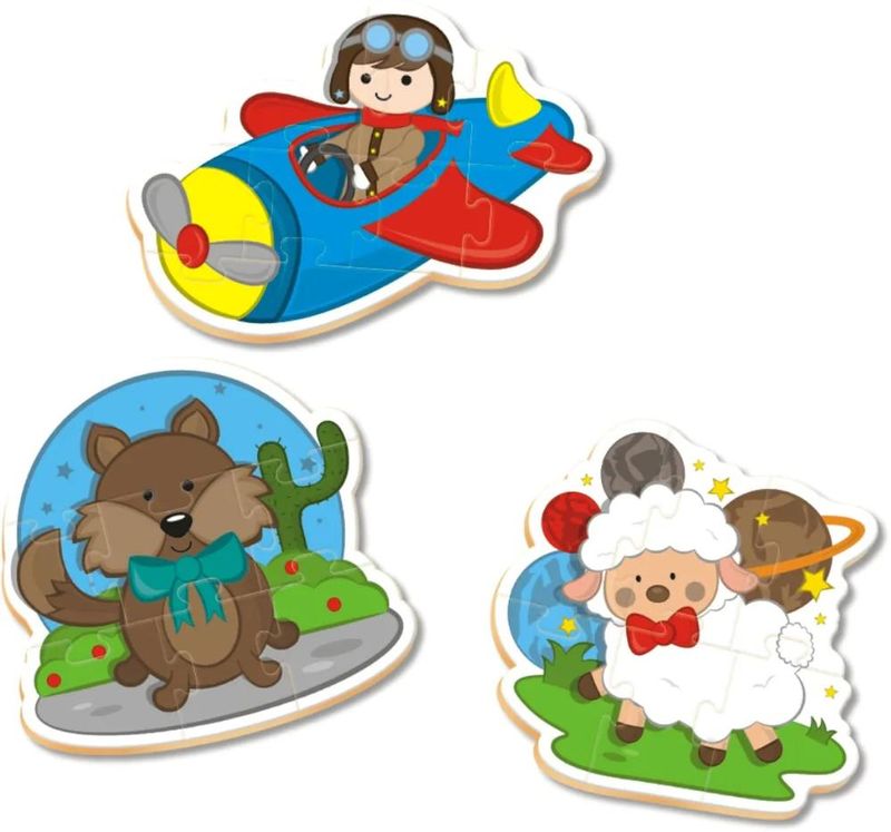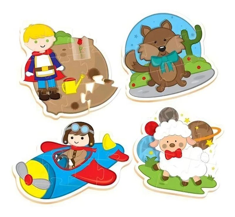 Aviso: Imagens meramente ilustrativas!!! O Pequeno Príncipe, o aviador, a ovelhinha e a raposa famosinha se juntaram no Quebra-cabeça Progressivo Pequeno Príncipe da Nig. Contém 30 peças grandes em madeira, formando 04 ilustrações fofas. Indicado para crianças em fase pré-escolar, esse QC traz diferentes níveis de dificuldade, com 06, 07, 08 e 09 peças em madeira. Desenvolve a coordenação motora, a percepção visual e o raciocínio. Contém: 4 Quebra Cabeças Idade: 4+ anos Material: Madeira Reflorestada Marca: Nig Brinquedos