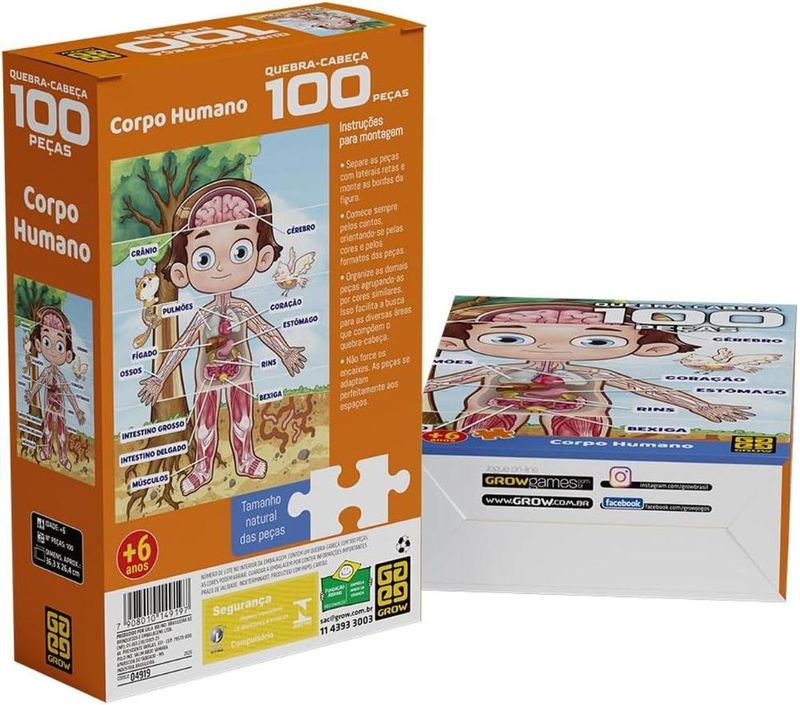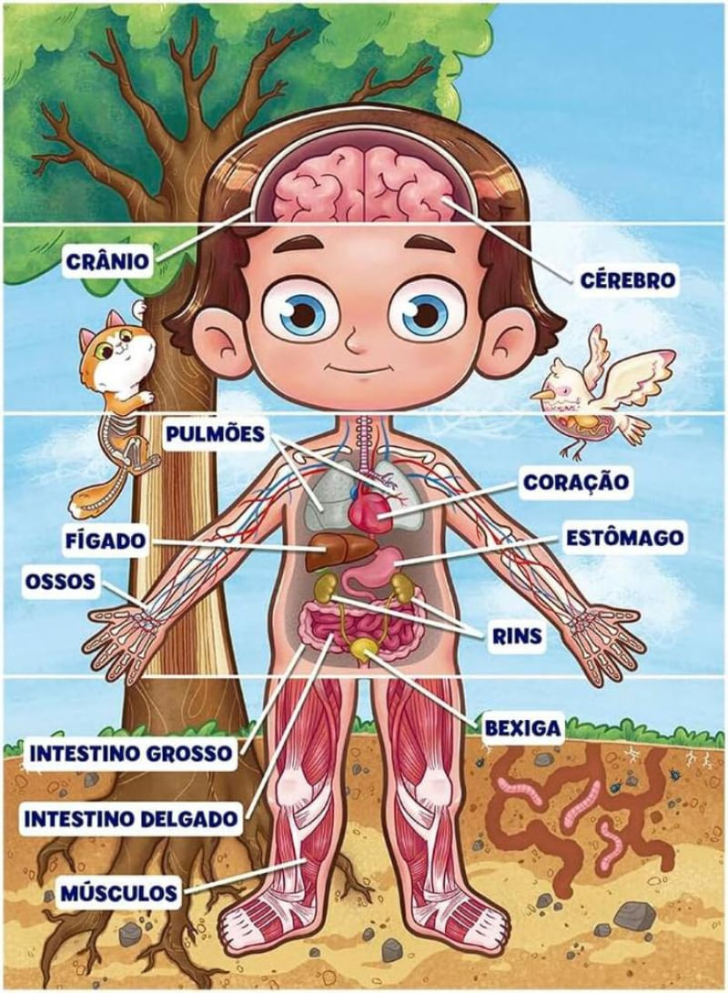 Aviso: Imagens meramente ilustrativas!! Descobrindo o Corpo Humano: Quebra-Cabeça Educativo para Crianças! Transforme o aprendizado em uma aventura divertida com nosso quebra-cabeça infantil de 100 peças com o tema Corpo Humano! Quando montado, revela um simpático e colorido desenho que mostra o corpo por dentro, com ossos, músculos, crânio, cérebro, coração, pulmões e muito mais! Uma maneira lúdica e visual de despertar a curiosidade e ensinar o funcionamento do corpo humano de forma leve e criativa. Quebra-cabeça de 100 peças A partir de 6 anos Dimensões 36,3 x 24,6 cm