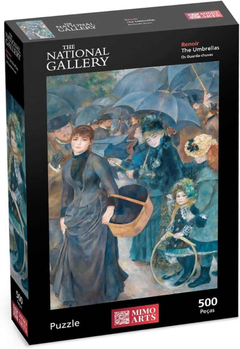 - Monte e divirta-se com esse incrível quebra-cabeça 500 peças. - Os quebra-cabeças são importantes no desenvolvimento por estimular a habilidade motora, a concentração e a percepção visual. - Renoir Os Guarda-Chuvas é um quebra cabeça em que junta aprendizado e diversão num só momento. - Quebra-cabeças são ferramentas valiosas que oferecem uma variedade de benefícios para o desenvolvimento integral do indivíduo, desde a infância até a idade adulta. Características: Marca - Mimo Arts Cód. 2611 Número de Peças - 500 Peças Tamanho do quebra cabeça - 47 X 32 CM Recomendado para crianças maiores de 10 Anos
