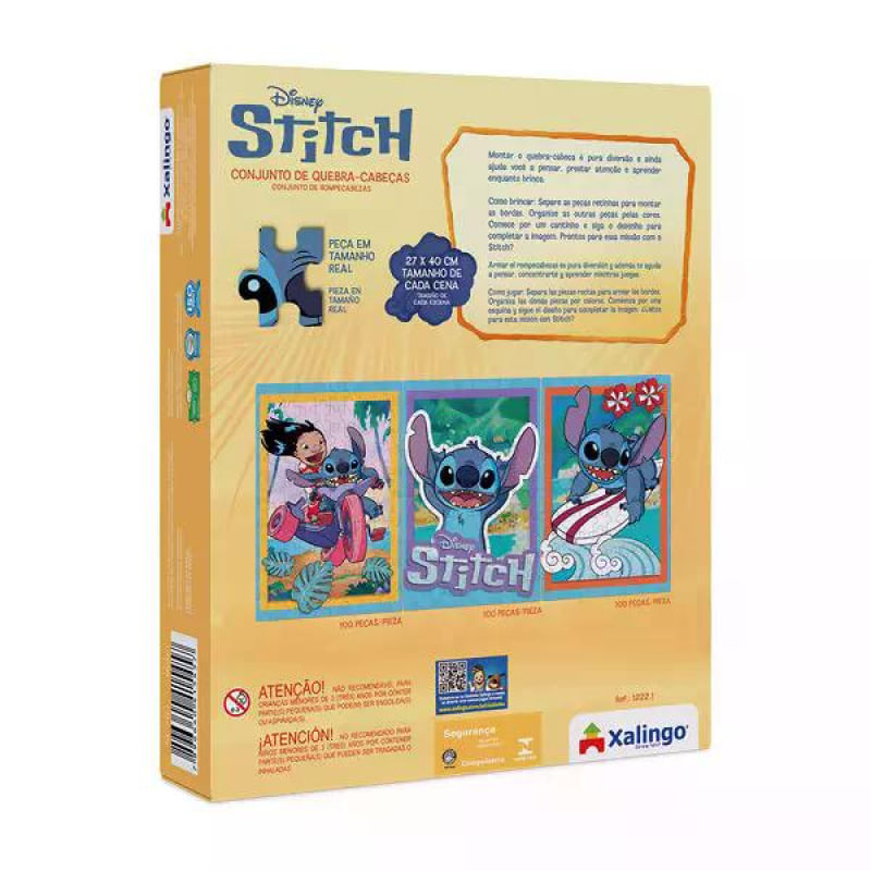 Leve a magia das aventuras de Stitch para a diversão em família com o Quebra-Cabeça Stitch da Xalingo! Este conjunto incrível traz 3 cenas diferentes do adorável alienígena, totalizando 300 peças feitas em madeira reflorestada, garantindo qualidade, resistência e sustentabilidade.