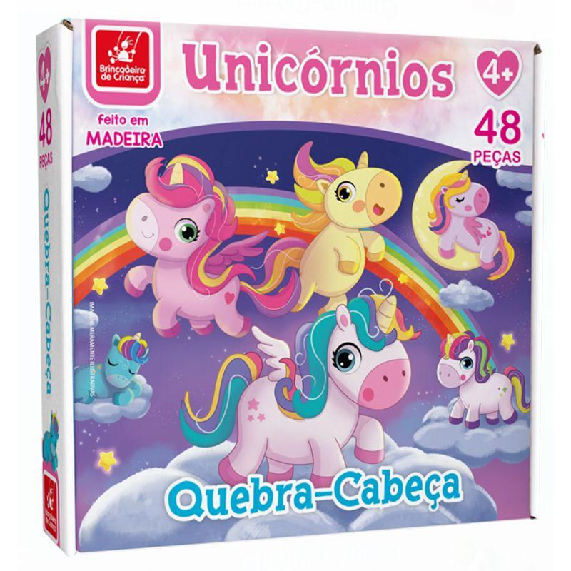 Ficha Técnica:Nome do produto: Quebra-Cabeça Unicórnios 48 Peças;Marca: Brincadeira de Criança;Idade recomendada: A partir de 4 anos;Selo Inmetro: 006333/2021;Contém: 48 peças.