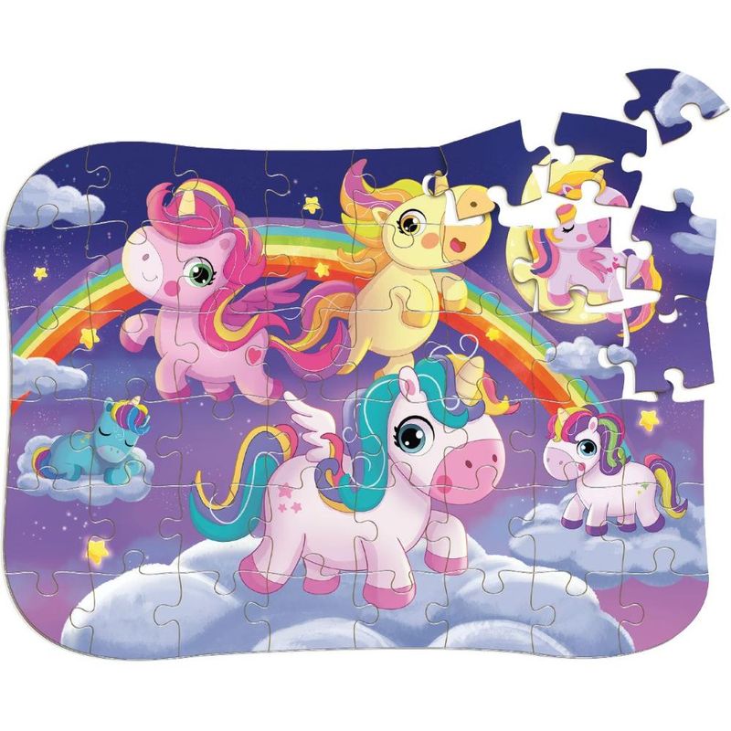 Diferenciais:48 peças de alta qualidade que garantem durabilidade e resolução do quebra-cabeça.Temática encantadora de unicórnios que estimula a imaginação das crianças.Produto ecológico, preocupado com a preservação do meio ambiente.Cores vibrantes e detalhes cativantes que enriquecem a experiência de montagem.