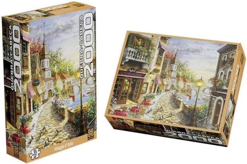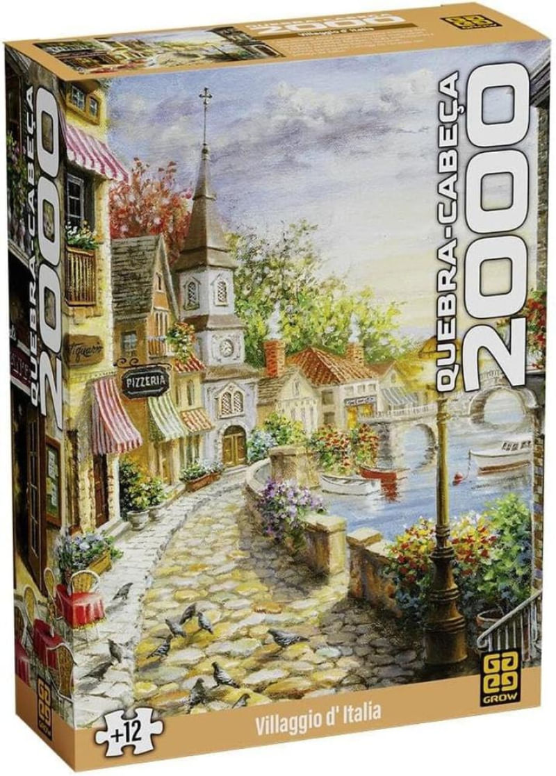 -Cada detalhe desta imagem celebra a beleza dos pequenos povoados italianos, com suas ruelas de pedra, varandas floridas, locais acolhedores e o reflexo sereno dos barcos no canal. -Perfeita para quem carrega no coração um pedaço da Itália! -Dimensões aproximadas 70,4 x 97,8 cm -Contém 2000 peças Características: Marca - Grow Cód. 4925 contém: 1 quebra-cabeça de 2000 peças Idade recomendada: + 12 anos Tema: Paisagem