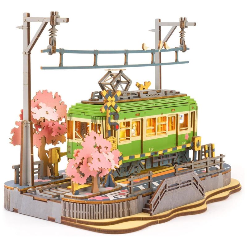 Um bonde verde de madeira 3D inspirado em mangá de cura é a escolha perfeita para quem busca uma experiência única de montagem de quebra cabeça.