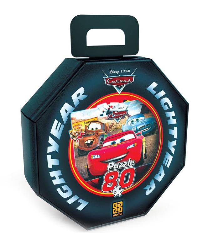 O presente especial e unico, voce so encontra aqui! Nao deixe de brincar e se divertir com este quebra-cabeca! Um quebra-cabeca super especial do Relampago MacQueen e sua turma. Sao 80 pecas para montar uma linda imagem que vem em uma caixa em formato de pneu.