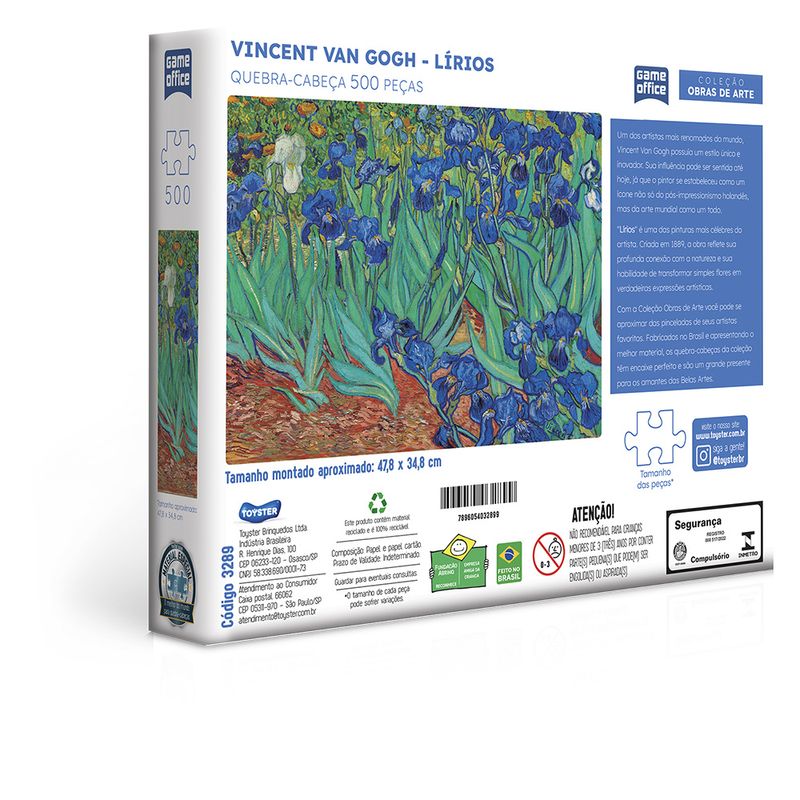 Com uma embalagem prática abre e fecha, montar um quebra-cabeça vai muito além de apenas encaixar peças! Ele traz diversos benefícios para o desenvolvimento, tanto para crianças quanto para adultos. Diverte-se montando esse lindo Quebra-cabeça 500 peças - Coleção Obras de arte - Van Gogh Lírios.