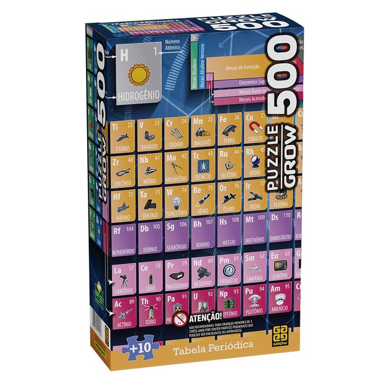 Criada no século XIX pelo químico russo Dmitri Mendeleev, a Tabela Periódica passou por diversas atualizações durante o tempo, até chegar à que conhecemos hoje. O modelo agrupa, organiza e classifica os elementos químicos e suas propriedades, tornando mais fácil seus estudos. Mendeleev organizou 63 elementos em função da massa atômica de seus átomos, originando, assim, as famílias e os grupos. Atualmente a tabela é formada por 118 elementos, e seu nome (periódica) se deve à repetição de propriedades, ou seja, de intervalos em intervalos. Mostre toda a sua química pelo tema e monte este quebra-cabeça superinformativo!