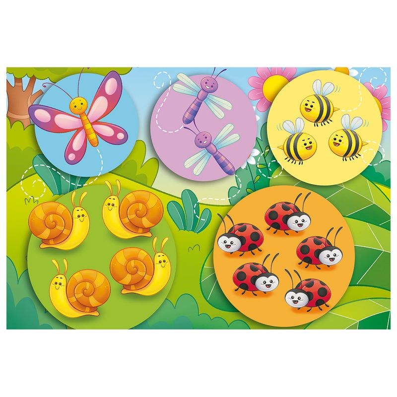 O Puzzle Progressivo Primeiros Números traz três quebra-cabeças com quantidade de peças e tamanhos diferentes, com níveis de dificuldade crescentes e adequados à idade da criança. Além disso, ele ajuda a desenvolver a concentração, a relação parte-todo e a identificação das imagens e dos números!