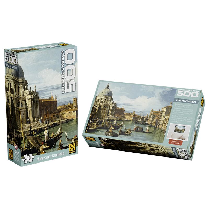 A Grow é pioneira e referência em quebra-cabeças no Brasil, desde 1977. Os melhores materiais são cuidadosamente selecionados sempre buscando qualidade para garantir um encaixe preciso e uma ótima experiência de montagem. Além de um excelente passatempo, de juntar a família e de melhorar a concentração, os Puzzles Grow se tornam lindos objetos de decoração. Este incrível quebra-cabeça de 500 peças de Veneza forma uma imagem incrível ao montado.