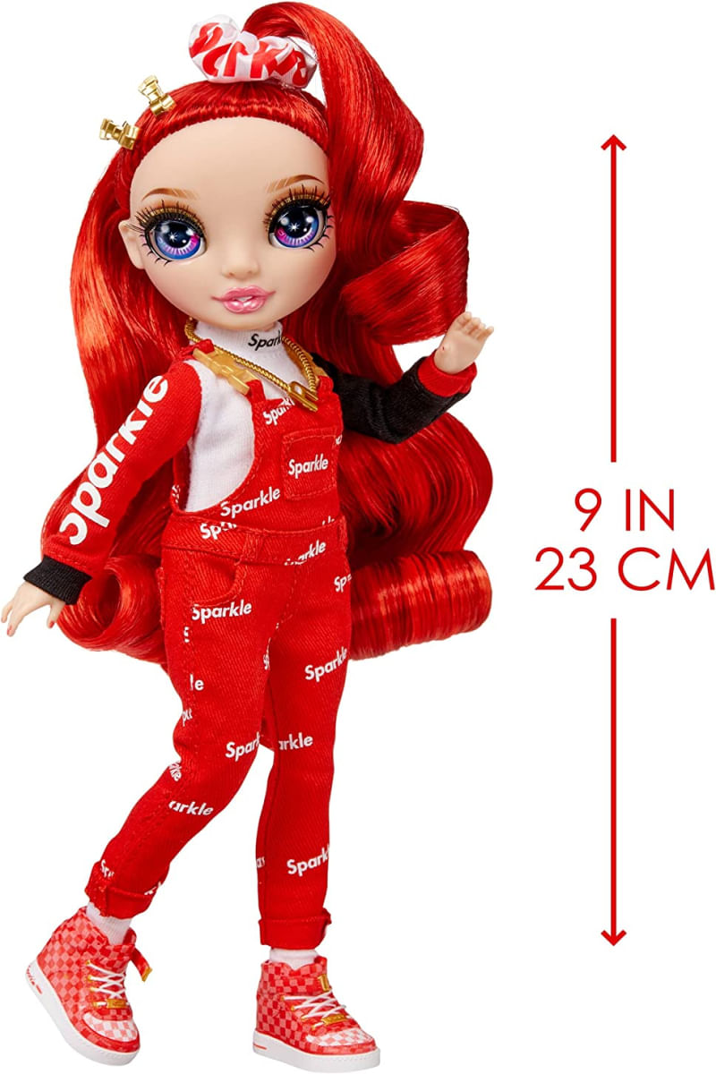 Boneca Rainbow High Junior Ruby Anderson Deixe suas cores brilharem com a coleção Rainbow High Jr. High. Conheça Ruby Anderson quando ela era mais jovem com esta boneca fashion de 23 cm com lindos traços, roupas detalhadas e lindos cabelos ruivos.